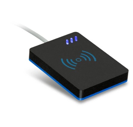 Duální čtečka (personifikátor) bezkontaktních médií EMmarin/MIFARE/DESFire/NFC/Virtual. Snadné připojení do USB portu počítače (USB-A pevný kabelový vývod).